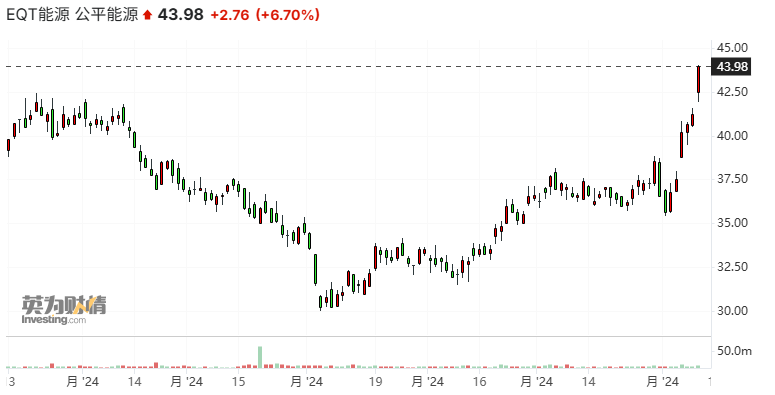 过去一周,美国生产天然气上市公司的股价整体走高,EQT能源上周累涨超16%,金德尔摩根累涨11%,Cotetta Energy累涨8%;昨日三只股票分别收涨6.7%、1.45%和3.38%。
