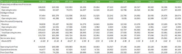 至于运营,预测微软的总收入将达到 690 亿美元,每股摊薄收益为 3.16 美元。预计微软的营业利润率将同比提高近 1%,这得益于智能云部门利润率的提高。展望 2025 财年的剩余时间,预测智能云部门将保持强劲,并在下半年随着更多与人工智能相关的基础设施上线而重新加速增长。
