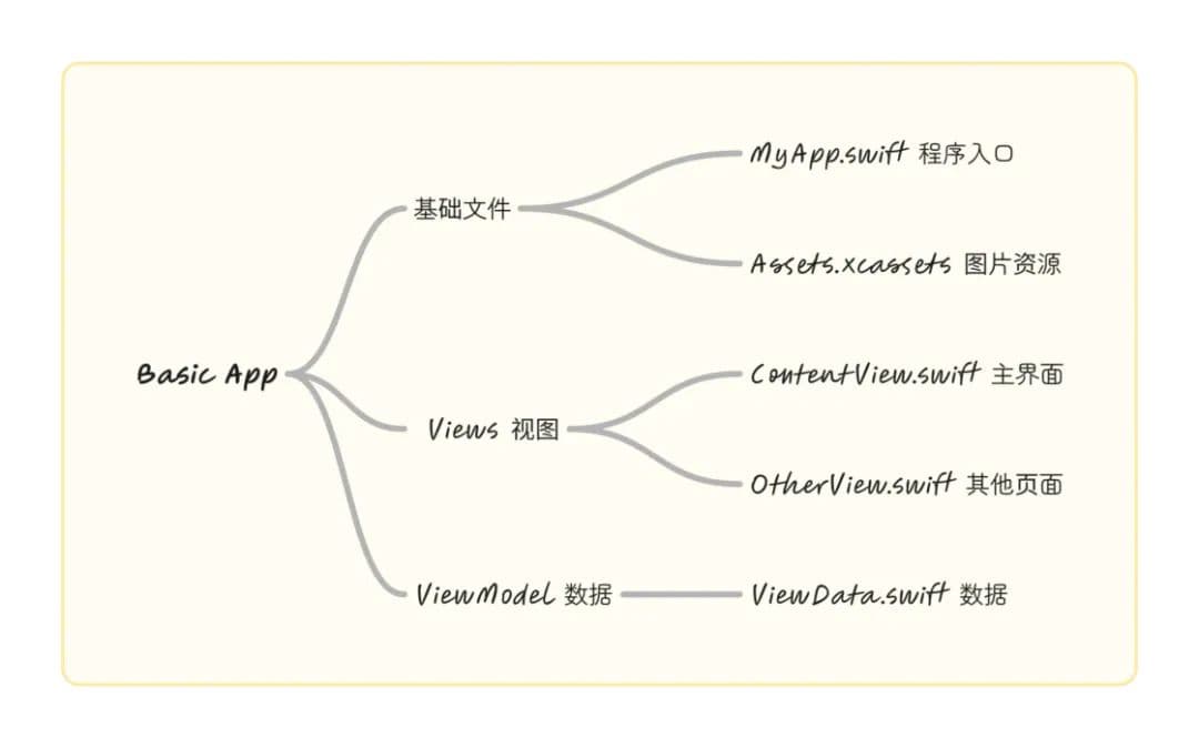 接下来,我让 Claude 讲述了一遍 SwiftUI 的项目结构。例如 iOS app 的图标应该放在哪里,页面是如何组织的,需要哪些基础的配置等。经历了多轮对话,我初步了解了一款 iOS app 的基本结构。