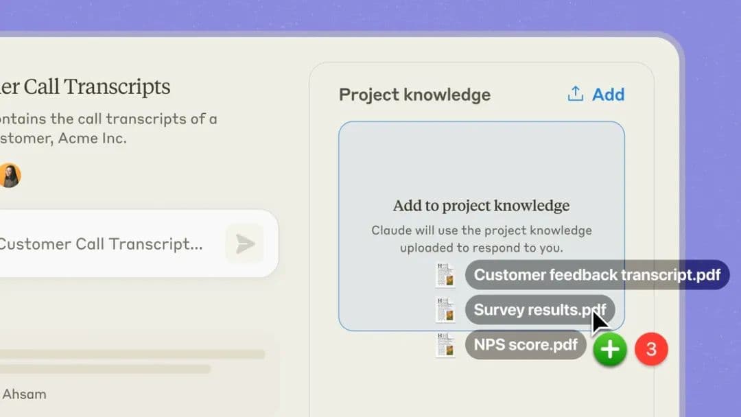 例如,Claude 提供了 Project 的功能。你可以将获取到的文档上传到 Project 中,AI 就会自动根据这些文档进行学习,提供更准确的解决方案。