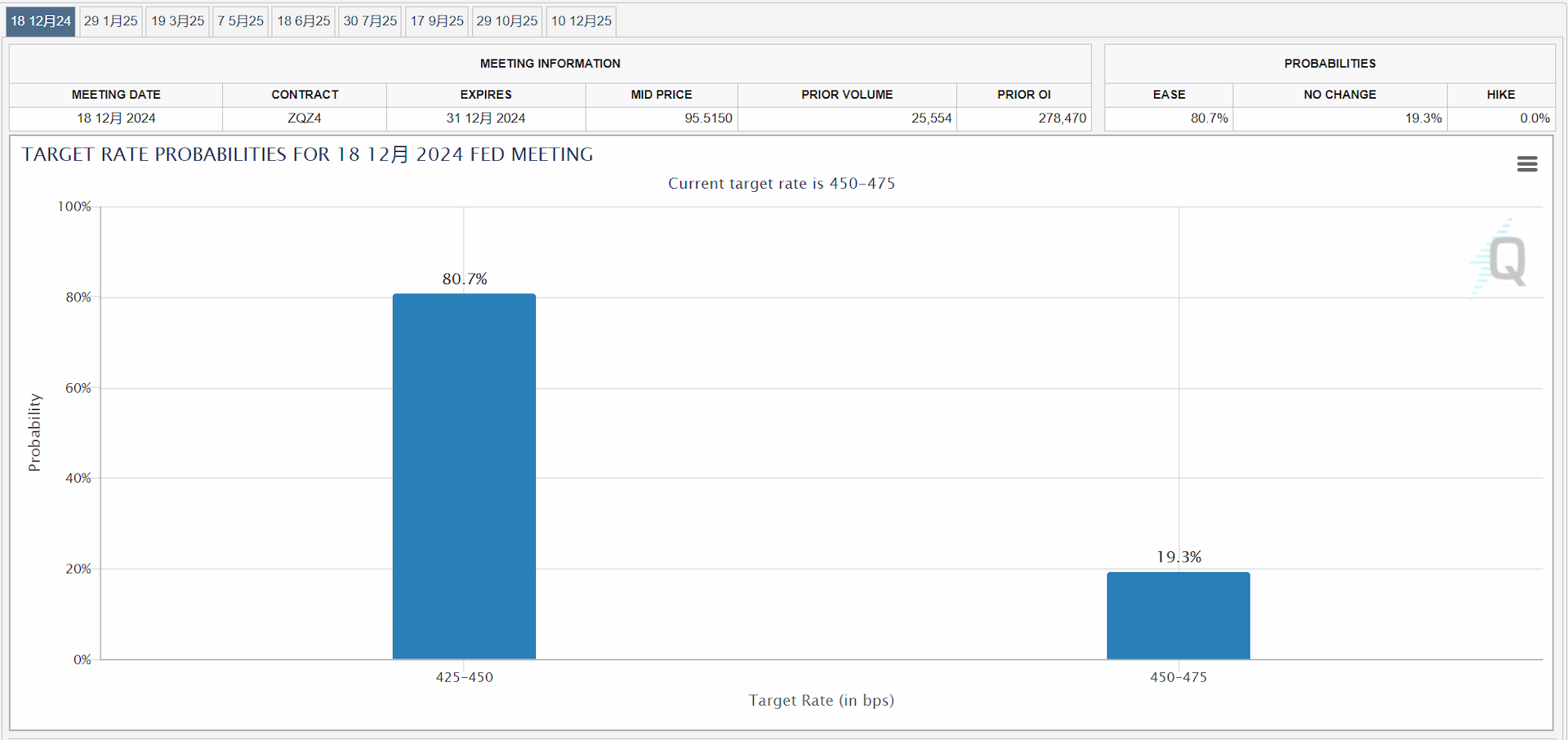 穆萨勒姆表示,数据显示核心通胀“仍处于高位”。数据公布后,投资者提高了对美联储官员将在12月的下次会议上再次降息25个基点的押注。