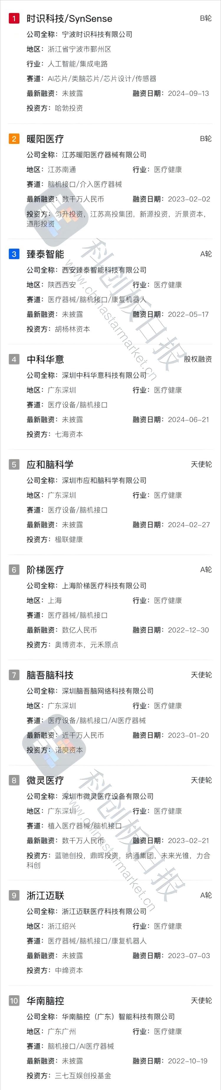 未上市公司方面,聚焦脑机接口赛道的主要有以下企业: