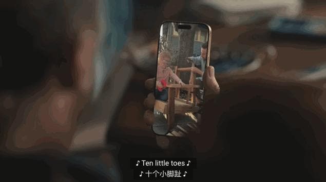 除此之外,还有一个家庭场景里的,是妻子忘记了丈夫的生日,趁他看孩子们送来的礼物时,她抓起手机生成了一段视频作为生日礼物。