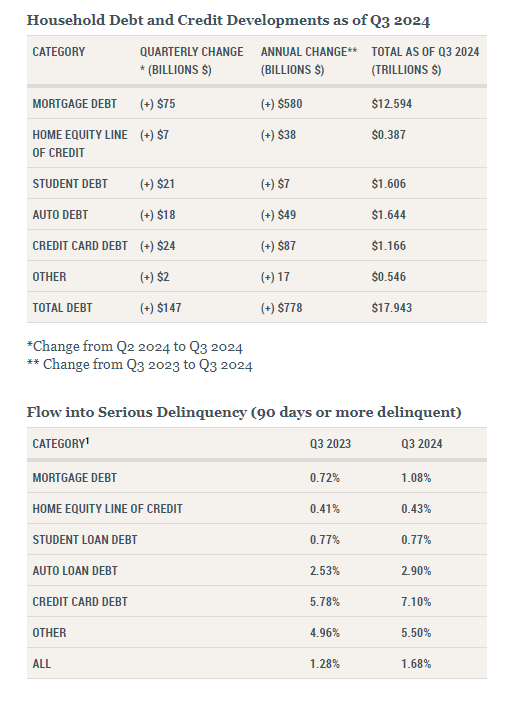 什么信号?纽约联储:美国家庭债务规模创新高,拖欠情况加剧!