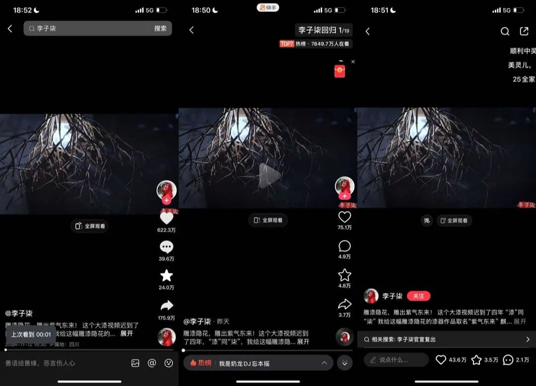 大叔看到,李子柒几乎同步更新了所有社交平台,包括不限于:微博、抖音、小红书、B站、快手、视频号……