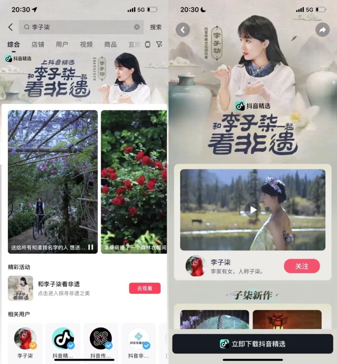 大叔本来以为是“重视”李子柒呢,结果点进去才发现,原来是抖音在借助这波流量,给自己另一个短视频app“抖音精选”在拉下载量……
