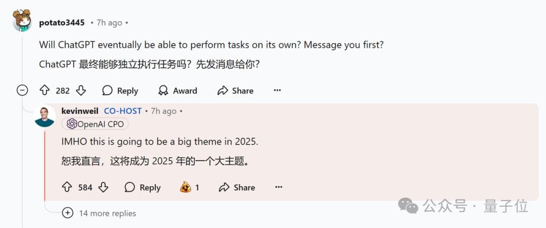 同时,OpenAI首席产品官Kevin Weil进一步表示,让ChatGPT自主执行任务将是明年一大重点。