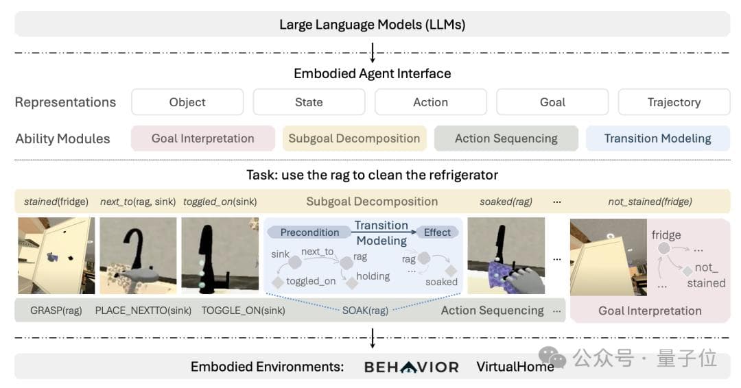 该框架名为Embodied Agent Interface(简称EAI),提供了连接不同模块和基准环境的标准接口。