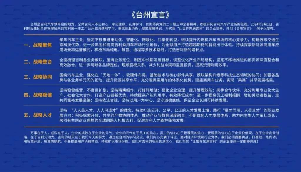 在官方的表述中,这样做就是为了响应集团的《台州宣言》。