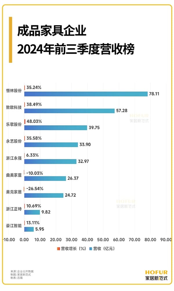 具体分析各个行业的起伏,有助于对大家居全局有更深刻的理解和投资判断。其中,成品家具受益于一直以来在出口份额上的深耕,摘得平均营收增长榜上的冠军位置。