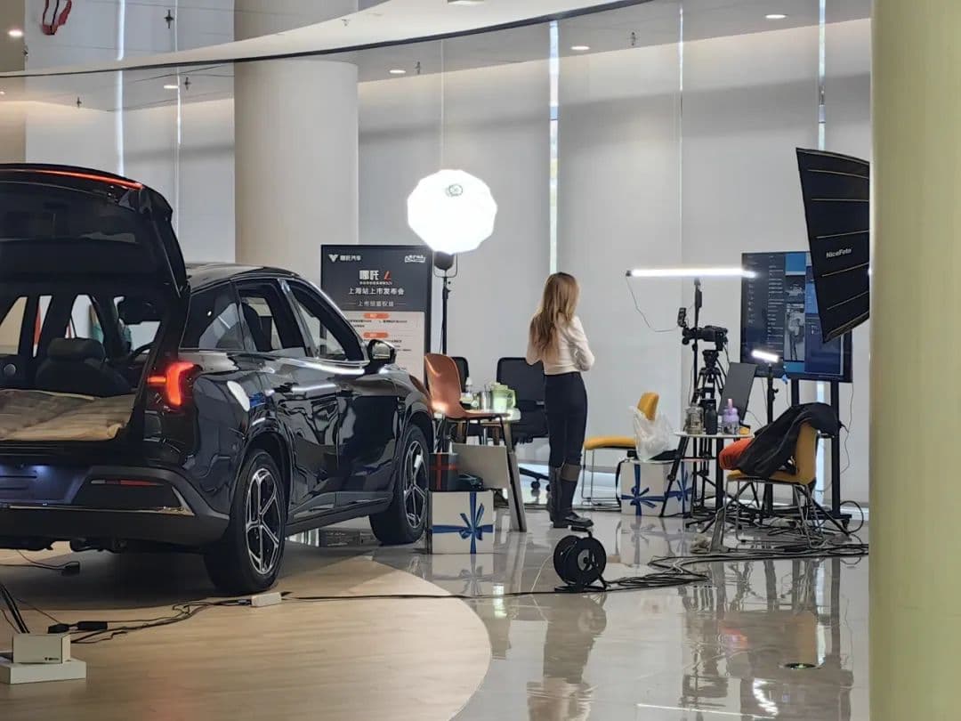 最引人注目的是门店深处的哪吒汽车直播间。线上线下同步是哪吒汽车的销售策略,今年年初,哪吒汽车CEO张勇发布微博表示,2023年哪吒汽车做得不好,其中一个原因是哪吒汽车传播方式老旧,有好东西宣传不出去。