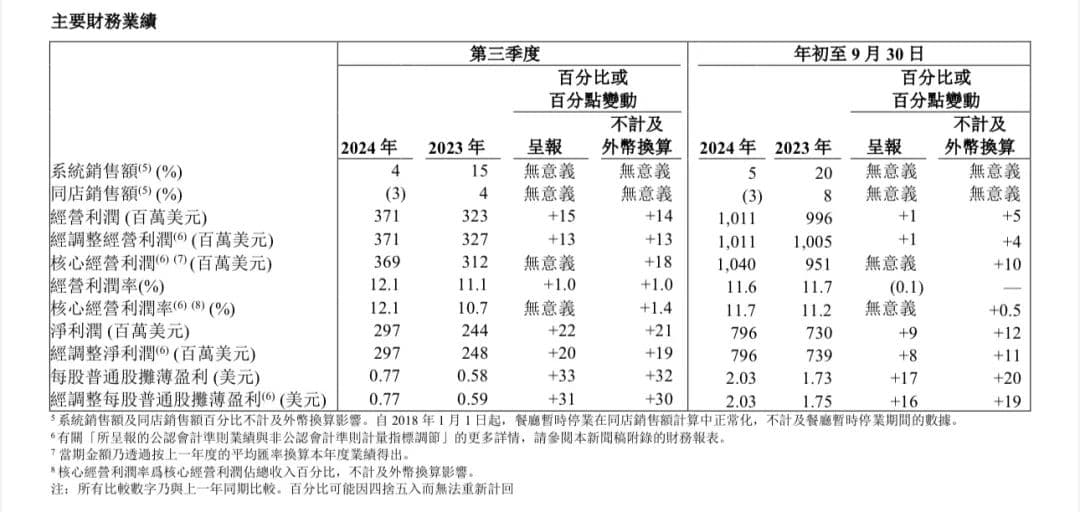 而据百胜中国近日发布的第三季度财报显示,其总收入同比增长5%至30.7亿美元,为历史最高季度;经营利润达到3.71亿美元,同比增长15%;经营利润率也同比增长100个基点,这得益于稳健的餐厅利润率和管理费用减少。