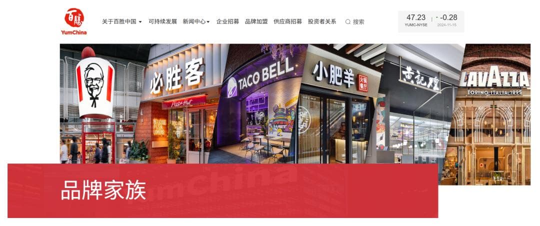 百胜中国旗下品牌家族 来源/百胜中国官网截图