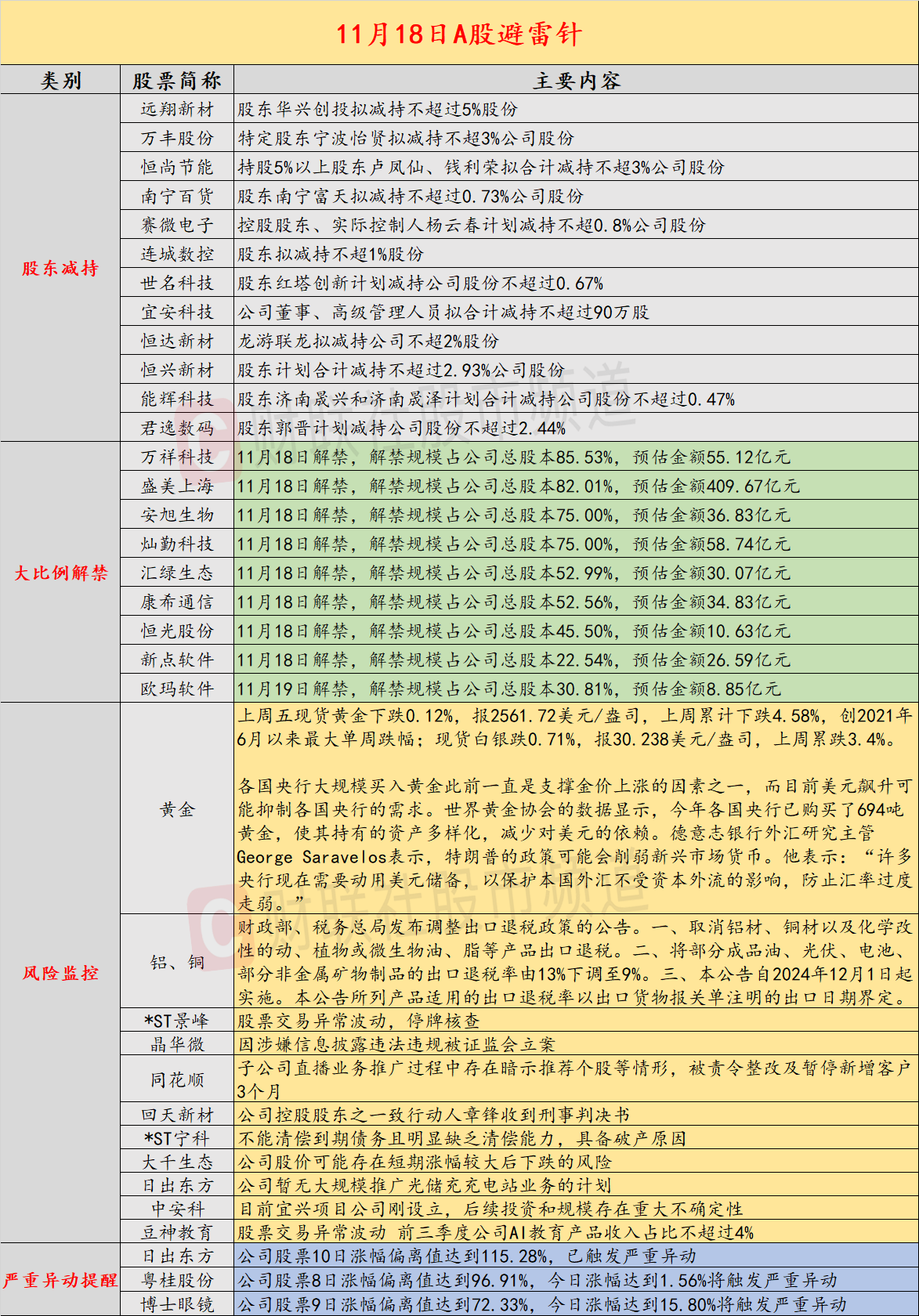11月18日投资避雷针:1400亿金融科技龙头因直播暗示荐股 子公司被暂停新增客户3个月