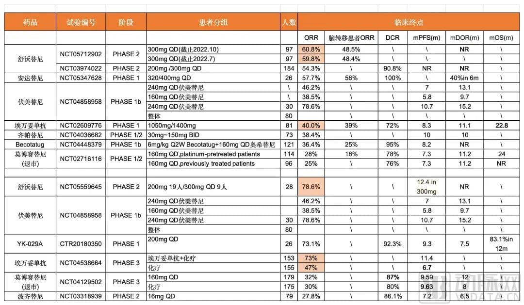 部分EGFR Ex20ins临床研究结果,数据源自Clinicaltrial