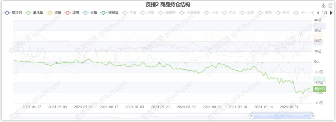 从最新的持仓净头寸最高的品种看,氧化铝、棕榈油、螺纹钢、纯碱、玻璃、豆粕,等等,都是近期的热门品种,特别是像氧化铝这种小品种,以前很少参与,目前已经持续一个月成为三大散户席位的最大空头品种。