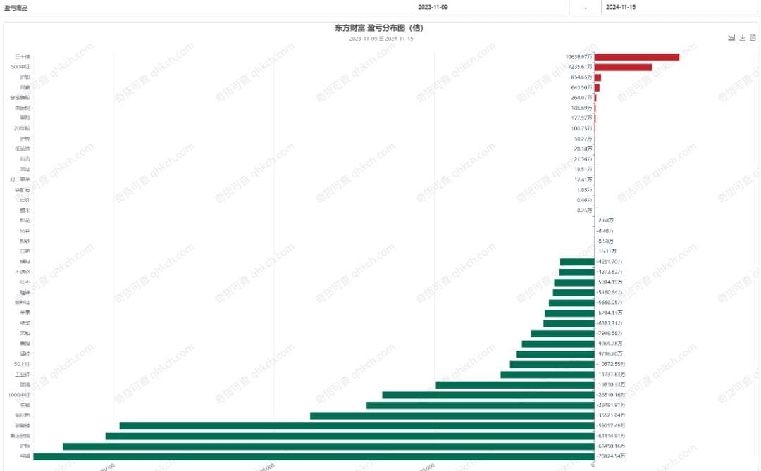 散货席位在这些空头品种中几乎是一路做多,以“亏货中的战斗机”的东方财富近一年的盈亏品种为例,纯碱、碳酸锂这两个持续空头趋势品种,再加欧运集线这个散户绞肉机,几乎贡献了大部分的亏损。而上面能赚小钱的,除了金融品种,几乎是今年全年震荡无行情的品种。