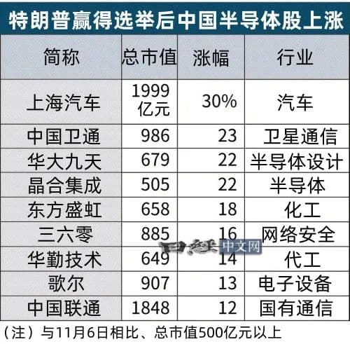 中国半导体股上涨的背景是美国大选后对华强硬派势头的增强。
