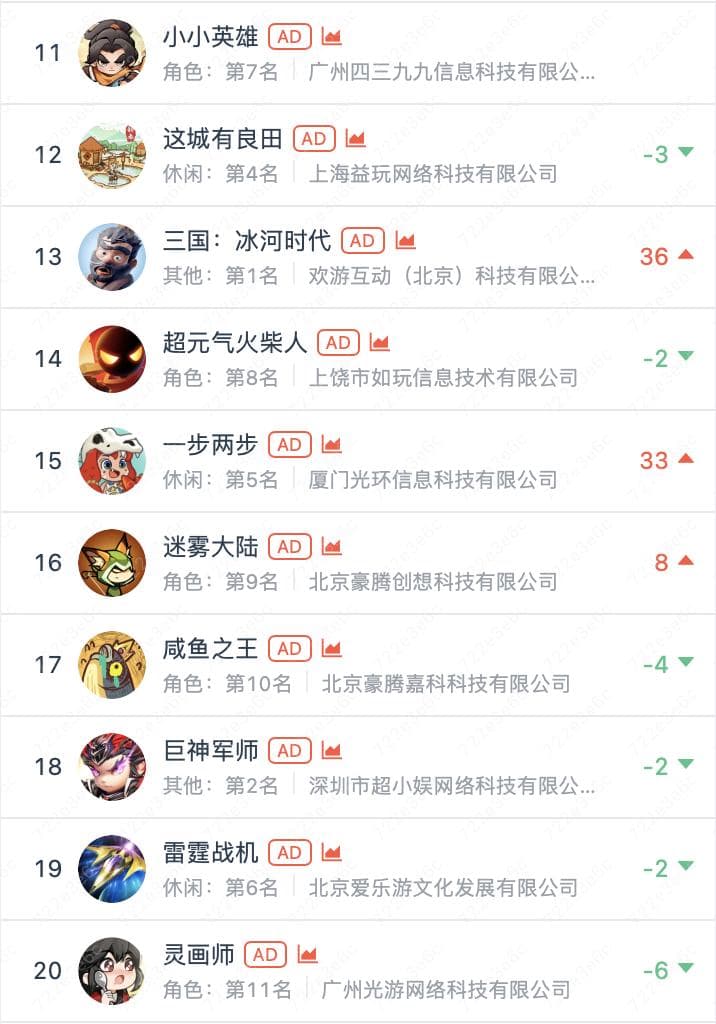同样排名跃升的还有《三国:冰河时代》以及《一步两步》,分别提升36名、33名。