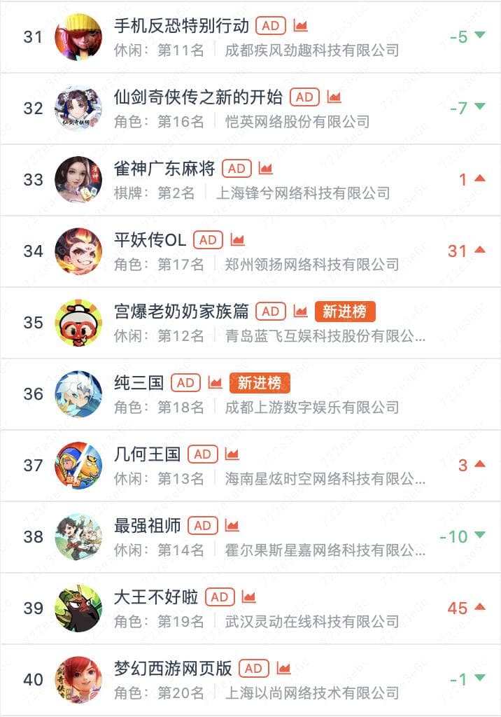 除了以上这些,榜单上还有多款产品飙升明显。如益世界《我是大东家》在10月表现突出,环比9月提升了25名;灵动在线的《大王不好啦》上升45名;郑州领扬网络的《平妖传OL》上升31名;玩美网络的《爆炸奇兵》同样上升了45名。