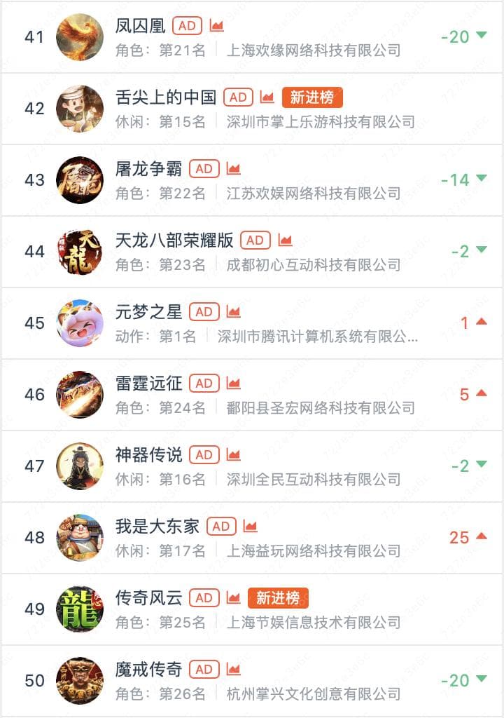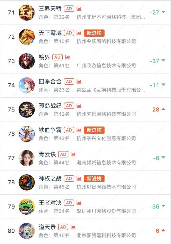 另外,这个月的传奇产品冲榜力度明显加大。新(再)入榜产品中,就有包括《传奇风云》《龙鳞圣域》《永恒诸神》在内的9款传奇品类产品,传统MMORPG玩法或将成为微信小游戏畅销榜的主流。