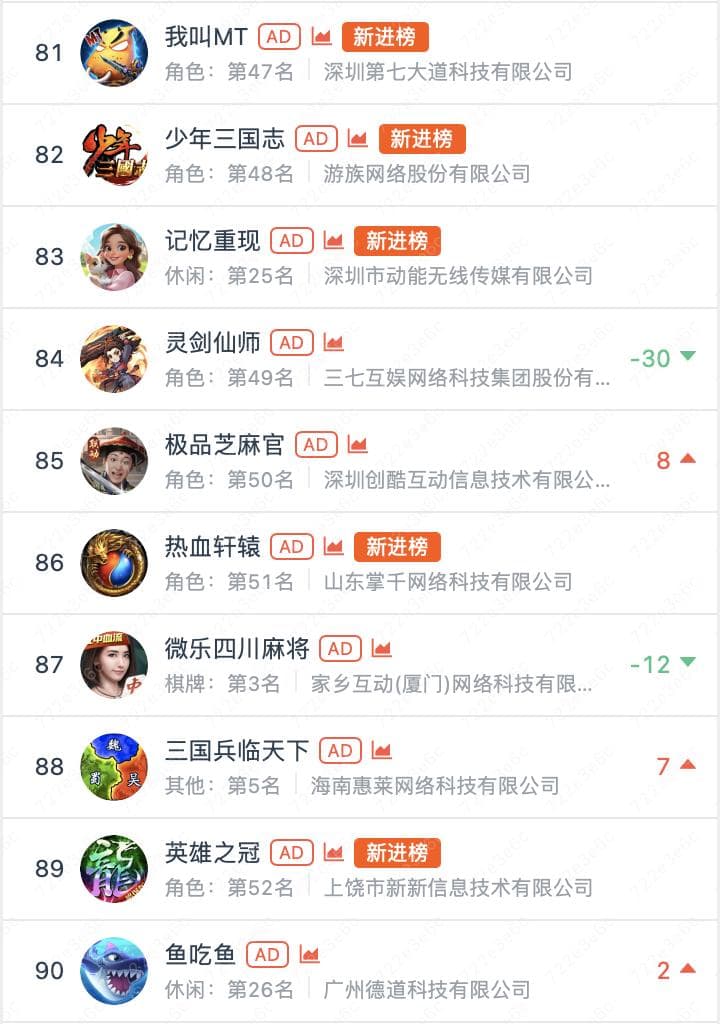 游戏在10月22日首次进入畅销榜TOP100,随后排名持续提升,最终排名月榜第82名。