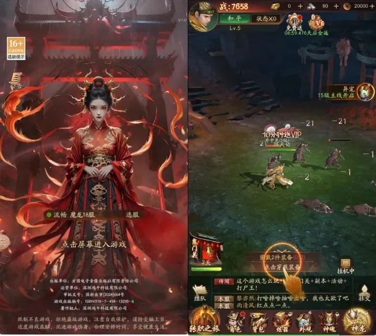 比如伍虎网络的《洪荒仙韵》空降榜单第23名,是一款融合了中式恐怖元素的道士题材放置MMO。游戏玩法采用经典的RPG模式,玩家作为道士需要通过抓鬼打怪提升自己的道法,期间采用自动战斗寻路,完成小怪和Boss战斗之后,达到特定等级还可以选择转职。