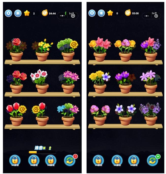游戏到后期还增加了不同难度的通关条件的关卡,例如限时挑战和无限畅玩等。除了单人模式,《花朵爱消消》还支持好友之间的互动与合作。