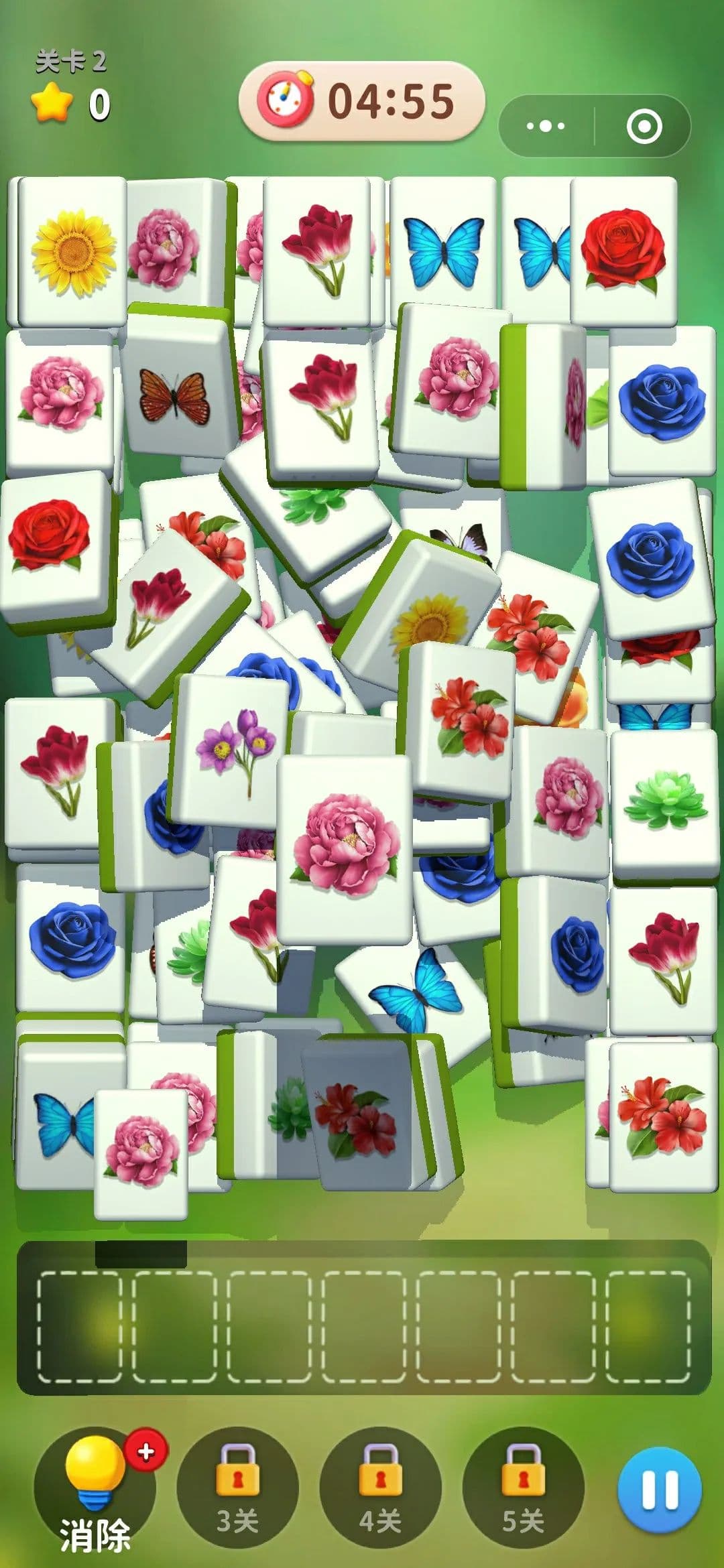 《玩不过我呀》则是经典手游《Tile Master 3D》的迭代版,主题从包含万物的道具变成了花草树木等植物,造型也变成了麻将牌的形状。玩家需要在摆满麻将的桌面选择三个同样的图案进行消除,桌面下方还有7个物品栏,一旦被填满且无法消除,则关卡失败。