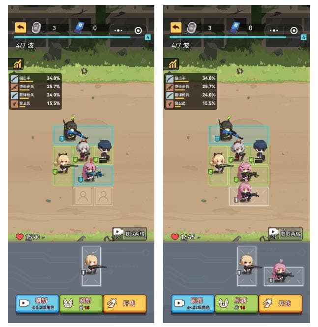 特别之处在于游戏在道具组合中加入“背包整理”这一变数,降低手操难度的同时,拉高策略脑洞。背包格子数量会限制上场角色数量,新格子位置的摆放,相同角色的合成和上场,都使得游戏更具策略性。