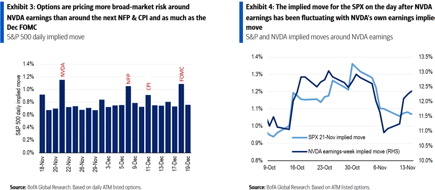 “期权市场给英伟达的盈利配置了更高的市场风险,而不是其他可能影响市场的事件,例如下一份非农就业报告的发布、消费者价格指数(CPI)报告,甚至是美联储12月的政策会议。”Asis和他的团队写道。