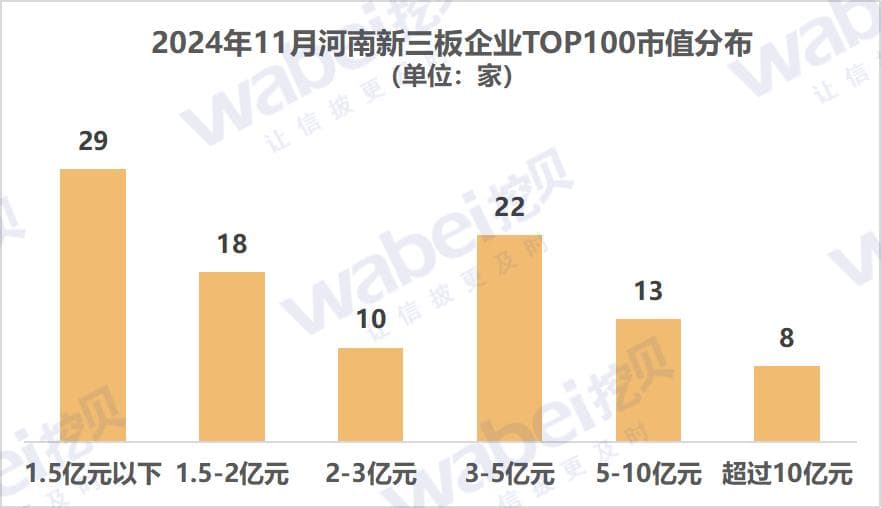 挖贝研究院梳理出2024年11月河南新三板企业市值TOP100(以下简称:“榜单”或“TOP100”),8家企业市值超过10亿元,12家企业冲击北交所。