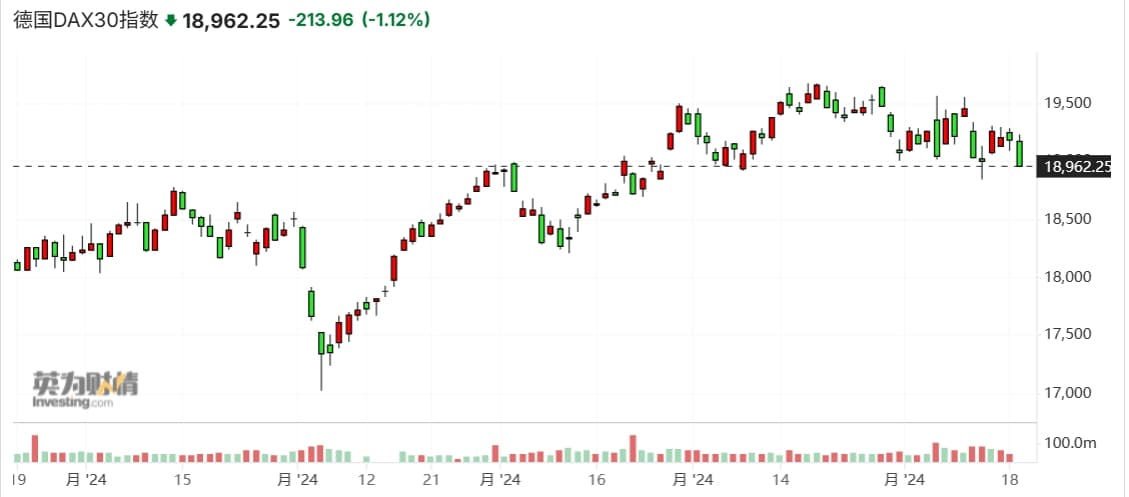 欧洲市场波动更为剧烈,德国国债收益率跌至去年10月以来的最低水平;欧元兑美元一度跌逾0.6%;波兰主要股指下跌2.5%,德国DAX指数下跌1.1%,法国CAC 40指数下跌1.5%,英国富时100指数下跌0.5%。