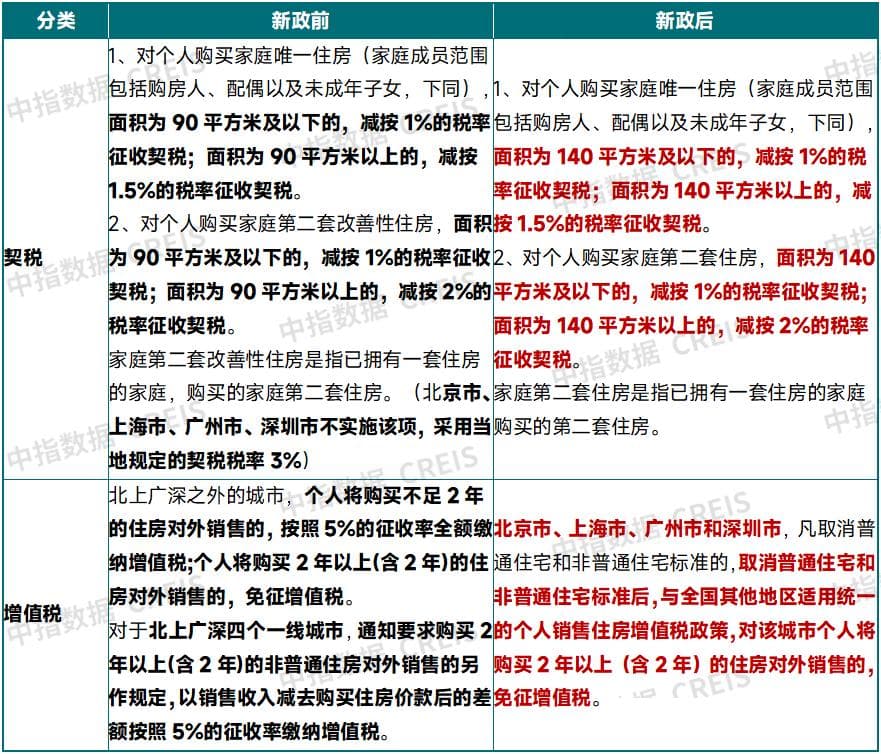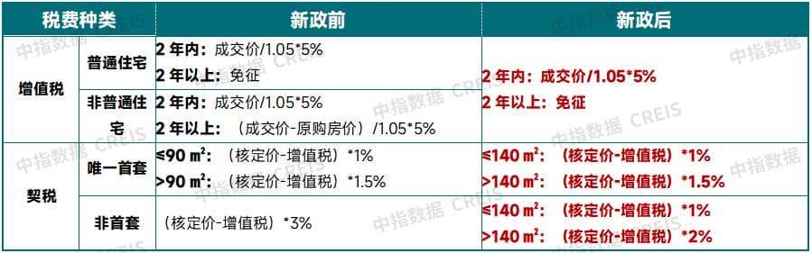 表:北京取消普通住房标准后增值税和契税情况