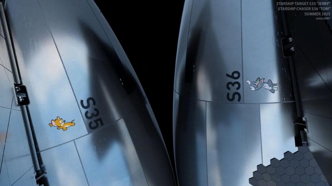 网友制作的星舰在轨加注对接图,用了汤姆和杰瑞的梗 | X.com
