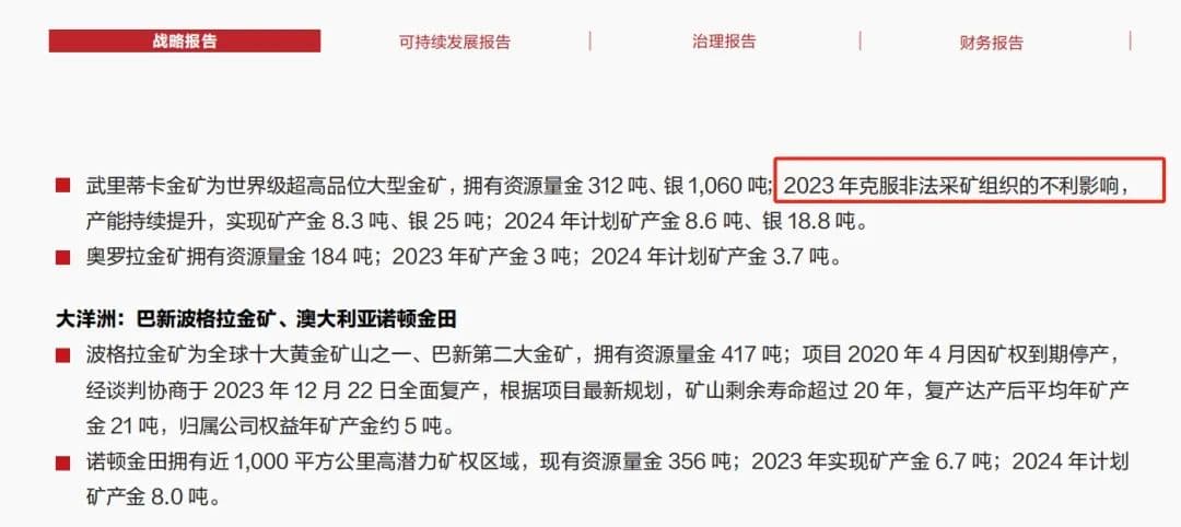 2021年至2023年的产金量分别是6.1吨、7.7吨、8.3吨,而2024年的目标则是8.6吨,简直挖得停不下来。