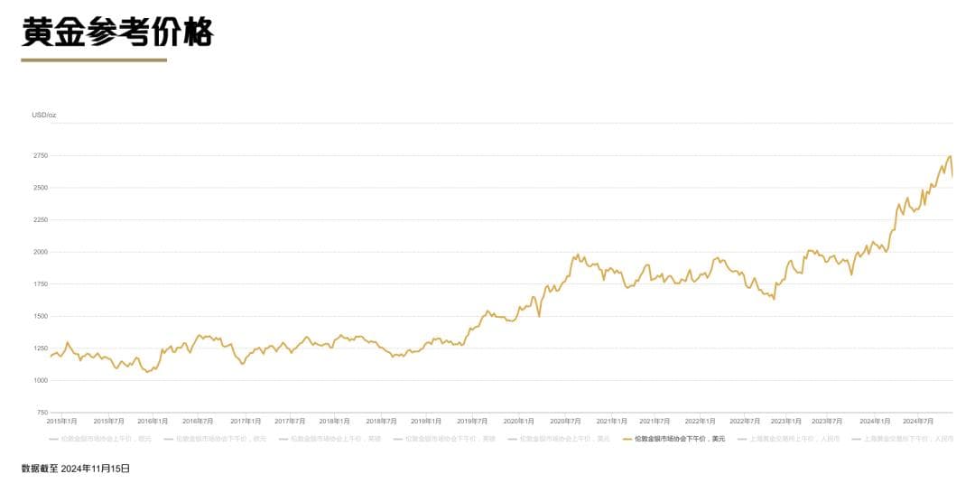 尤其是随着全球经济放缓,通胀高企,加之地缘局势不断恶化,将国际金价持续推高,纵使近期金价有所回落,但整体仍处于2500美元/盎司以上的高点。