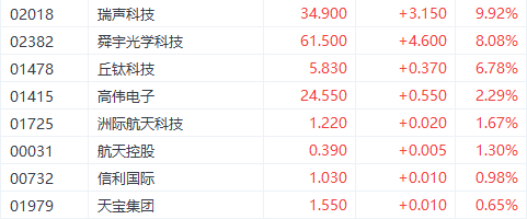 财联社11月22日讯(编辑 胡家荣)受苹果AI的利好消息刺激,港股消费电子股多数走强。截至发稿,瑞声科技(02018.HK)、舜宇光学科技(02382.HK)、丘钛科技(01478.HK)分别上涨9.92%、8.08%、6.78%。