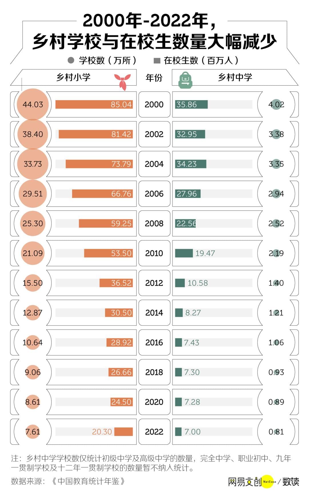 在新中国成立后,农村教育也曾辉煌过,村村有小学,乡乡办中学,让无数农村学生体验了一把家门口上大学的“初级版”。但好景不长,千禧年的到来也敲响了乡村教育的丧钟,21 世纪以来,每天约有 43 所村小消失 [1][2]。