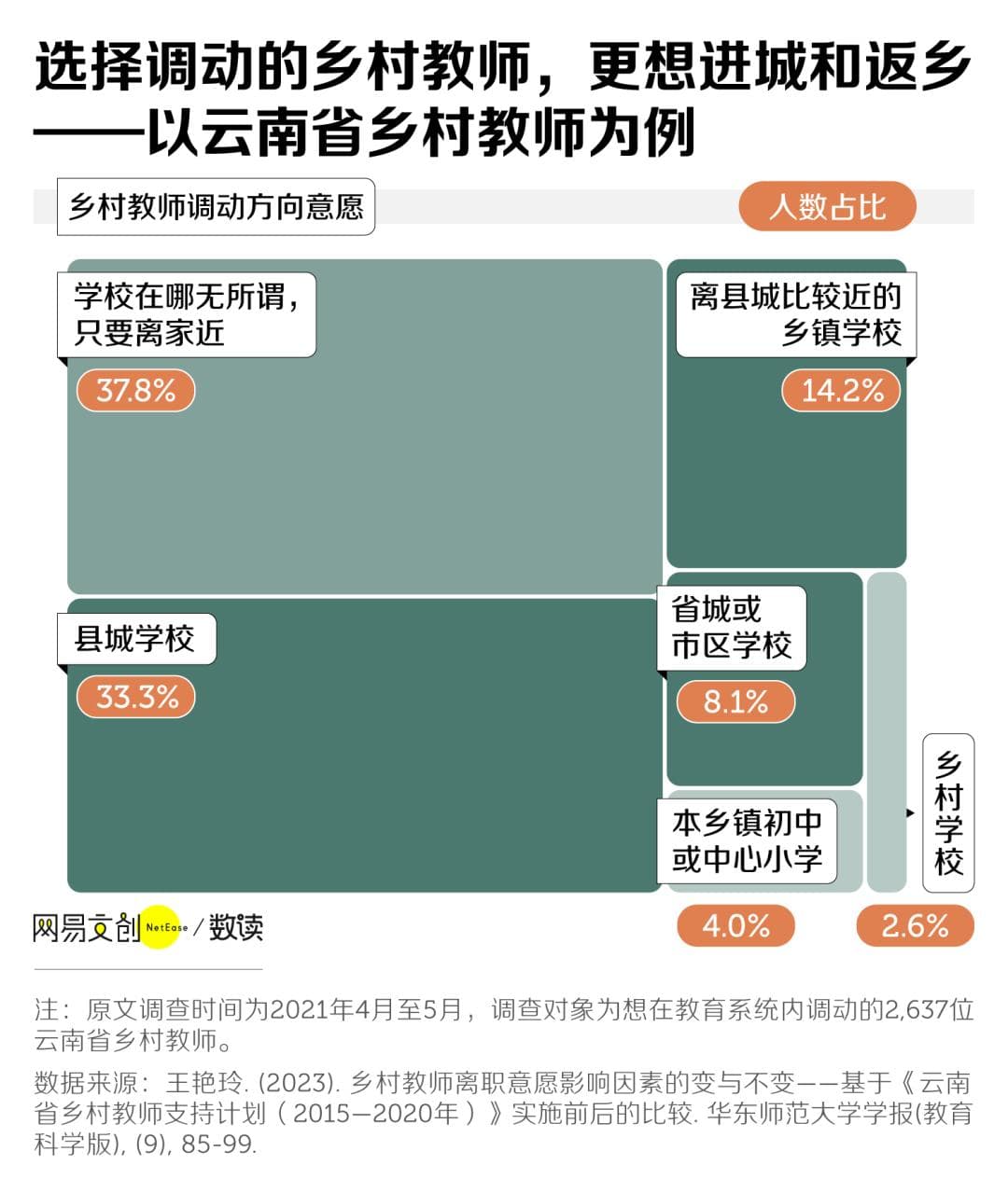 更加浩浩荡荡的,是超过 55% 的教师想走向城区或城郊的学校,而想调动到其他乡村学校的老师仅占 2.6% [16]。