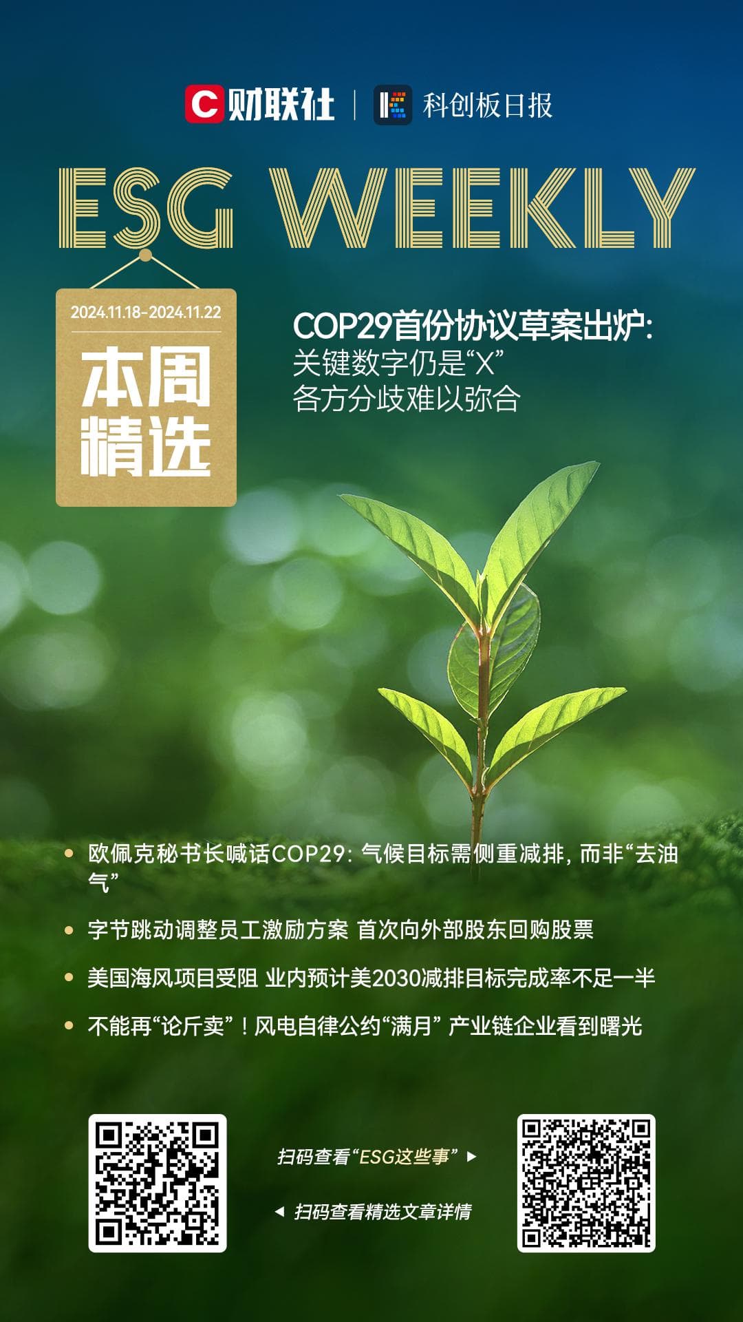 ESG Weekly|腾讯混元技术负责人刘威离职创业;中国可持续发展蓝皮书在巴库气候大会中国角发布