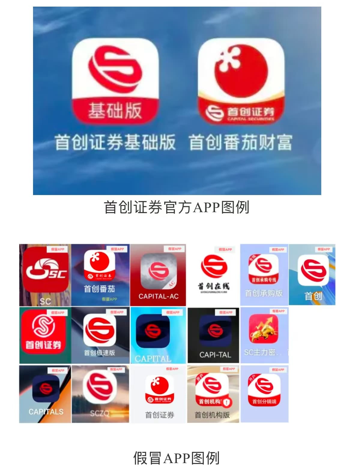 首创证券声明:不法分子假冒公司客服人员、工作人员或合作伙伴,进行推荐股票、委托理财、劝说投资者加入荐股微信群、假冒回访等非法活动,还仿冒公司 APP 客户端,承诺违法违规服务,冒充公司印章、文件诱骗投资者转账。