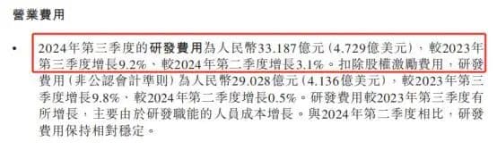 蔚来在研发方面继续保持高投入节奏。财报显示,今年第三季度,蔚来投入的研发费用约33.2亿元,较2023年第三季度增长9.2%,较2024年第二季度增长3.1%。“研发费用较2023年第三季度有所增长,主要由于研发职能的人员成本增长。”蔚来方面解释称。
