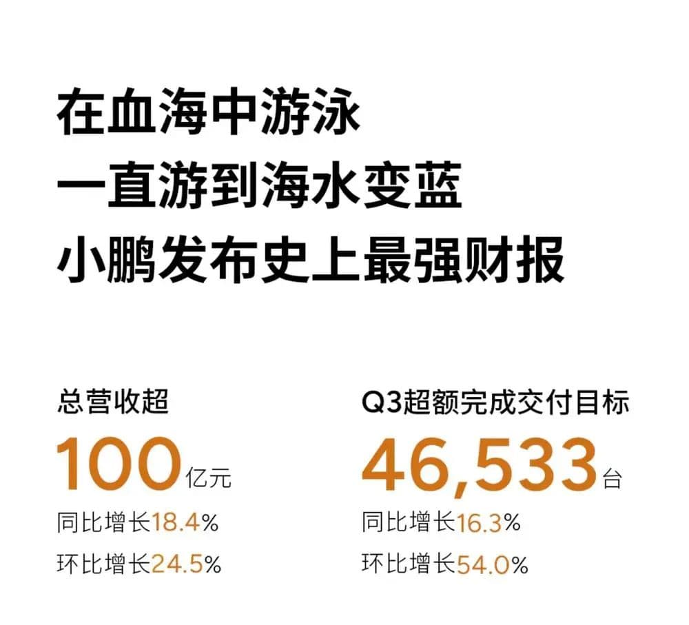 三季度,小鹏汽车营收101亿元,毛利率达15.3%,同比提升18.0个百分点,环比提升1.3个百分点。整体表现再创历史新高。