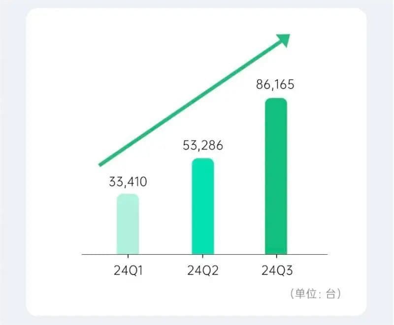 本季度小米SU7系列交付新车达39,790辆。截至9月30日,已交付67,157辆小米SU7新车。11月19日,雷军宣布小米汽车目前正式交付已超过10万辆,提前完成全年目标,并表示将冲刺新目标:全年交付13万辆。