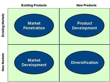 首先,在定义产品的时候,有个很好用的工具是安索夫矩阵,就是帮助你想清楚,你到底是要在现有的人群里去开发一个迭代的产品,还是要去一个没人做过的领域挖新的人群,前者竞争性强但更安全,后者竞争力小,但风险更高,新人群未必会接受。