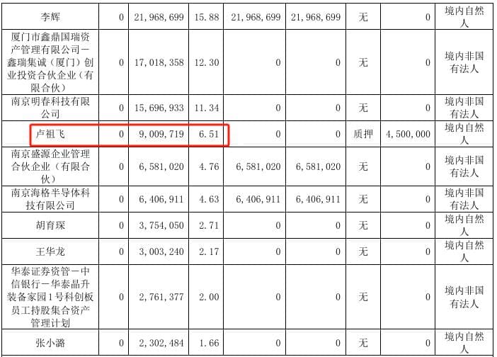 截至今年6月末,卢祖飞持有晶升股份的股份比例为6.51%,是公司的第四大股东。这次协议转让后,卢祖飞持有公司的股份将归零。因为这次转让并不影响实控人李辉的持股比例,所以晶升股份的控股股东并不会有所变化。