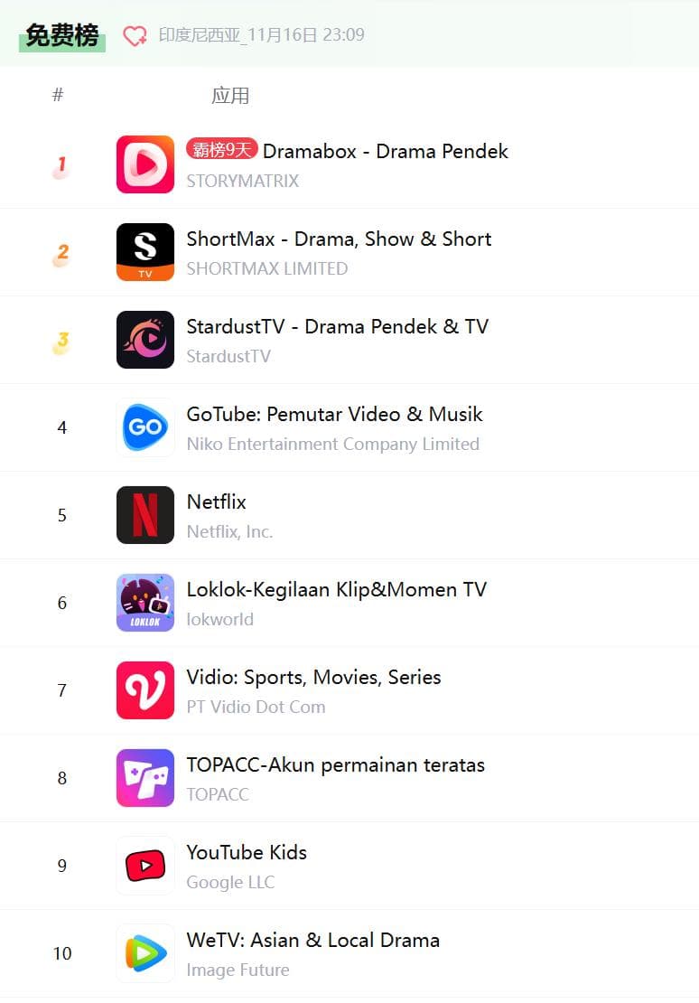 东南亚最重要的印尼市场Google排名,前三名全部是中国短剧出海平台