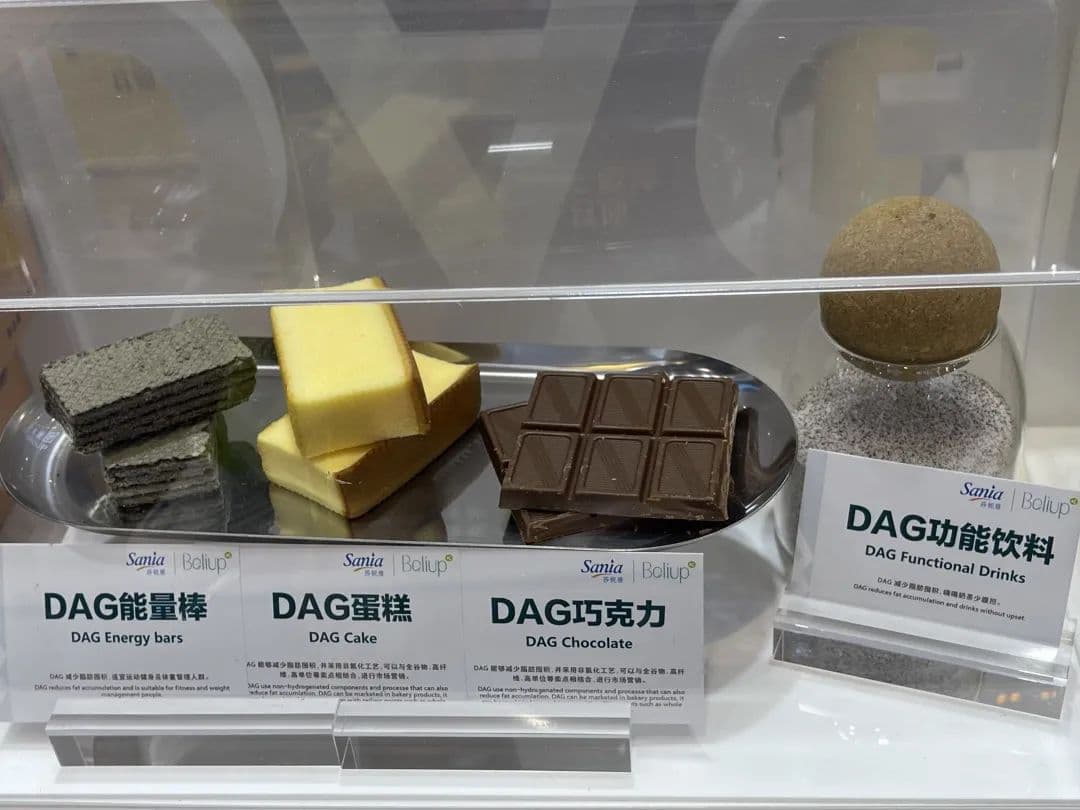 此外,在2024年进博会上,益海嘉里金龙鱼展示了甘油二酯的多领域应用潜力,如甘油二酯蛋糕、巧克力、功能饮料等,为这一成分的未来发展提供了更多可能性。