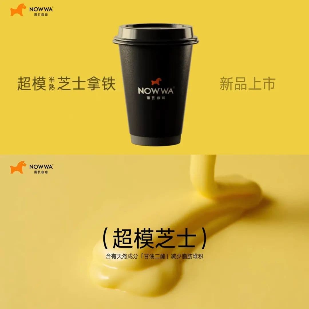 今年10月,挪瓦咖啡推出的“超模芝士拿铁”成为国内第一款将甘油二酯融入现制咖啡的产品。